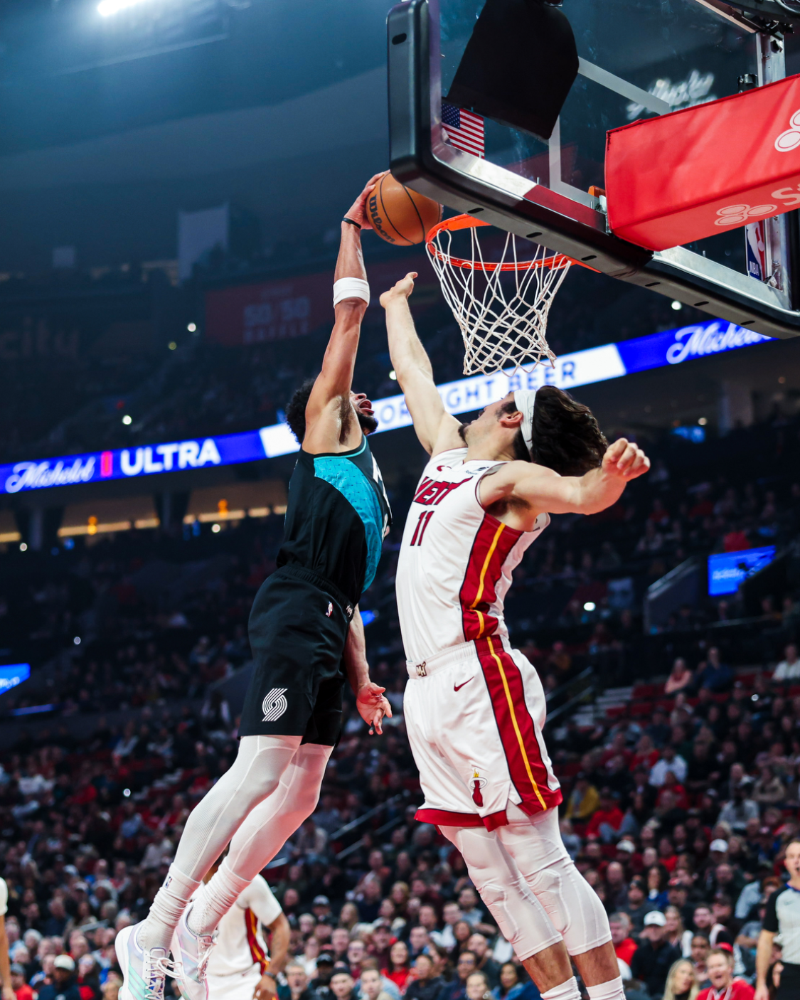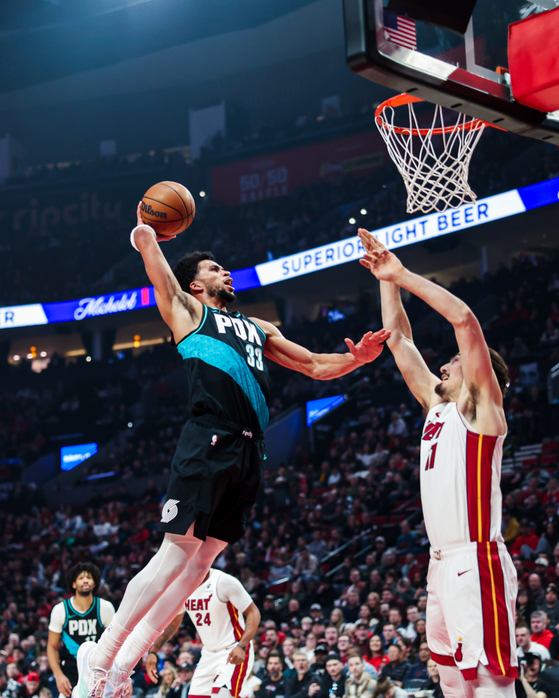 开拓者队的夏普得到27分和7个篮板,阿夫迪亚得到20分、7个篮板和4次助攻,勒夫得到20分和4次助攻,卡马拉得到16分、9个篮板和6次助攻,霍勒迪得到15分和7个篮板,格兰特得到12分,罗威得到4分和10个篮板。热火队的阿德巴约得到32分和9个篮板,鲍威尔得到18分,冯特奇奥得到17分和4个篮板,维金斯得到14分和5个篮板。